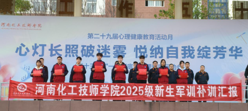 2025年11月13日下午,河南化工技师学院学生工作处(团委)在田径场举行了2025级新生军训补训汇报,学生工作处副处长武鹏以及各产业学院、基础教学部负责老师共同参与此次活动,本次汇报由李伯涵老师主持。
